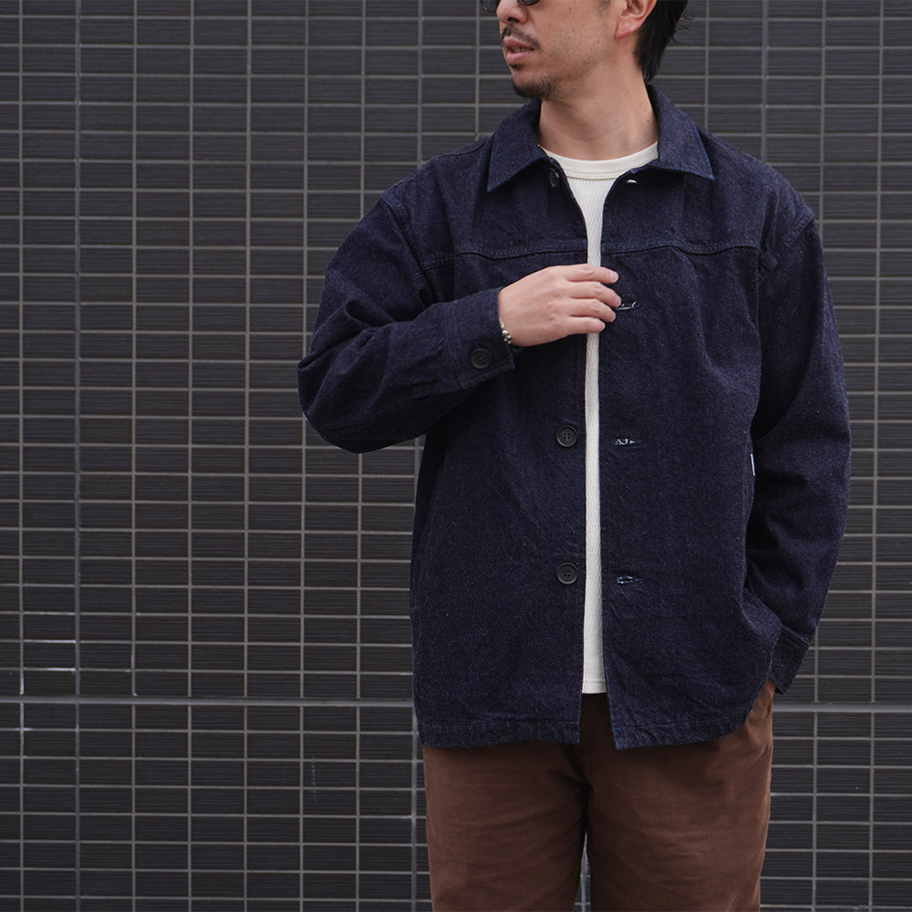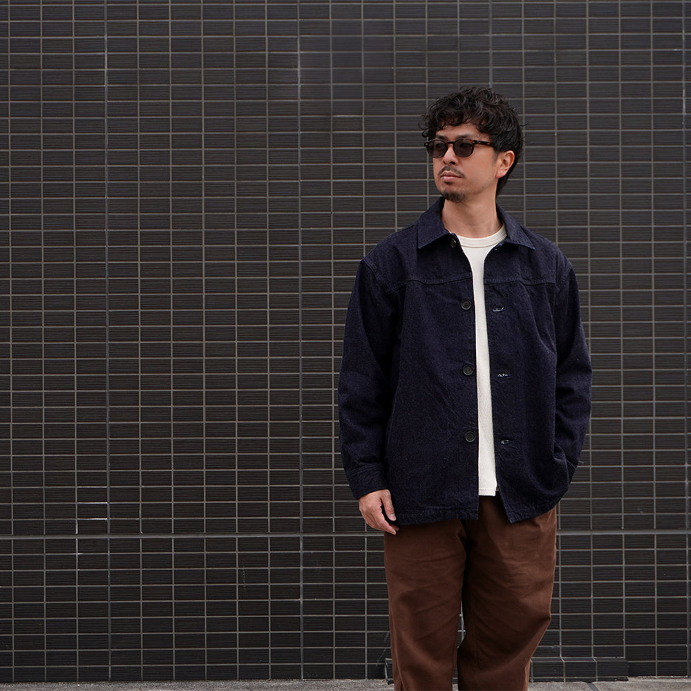 同じくオリジナルセルビッチデニムを使用したスラックス型デニム(ジェントルパンツ)とセットアップでの着用が可能なコチラは、パンツ同様にSugar&Co.らしさ全開の1着です。